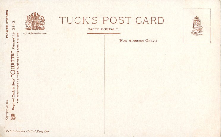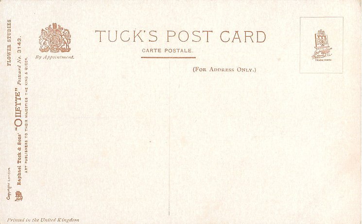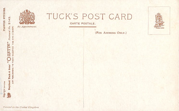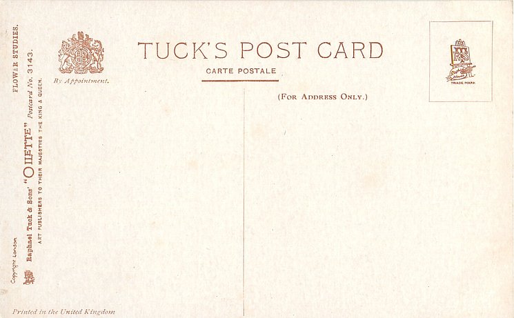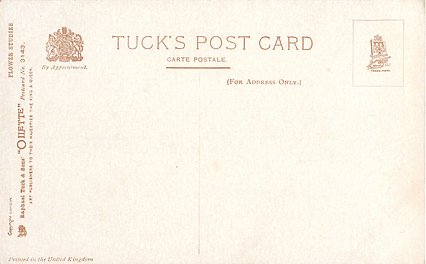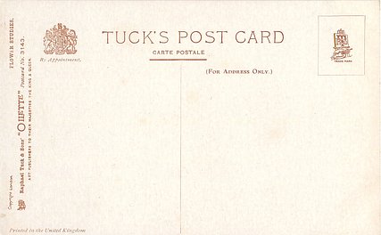 OILETTE, PRINTED IN ENGLAND or PRINTED IN THE UNITED KINGDOM, COPYRIGHT LONDON, 2 backs, listed in 1926/1927 POSTCARD Catalogue