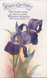 comes opt. in purple EASTER GREETINGS & verse:- OUR HEARTS AWAKE IN SWEET ACCORD, TO GREET AND PRAISE THE RISEN LORD.