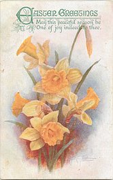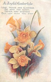 come opt. above A JOYFUL EASTERTIDE & verse:- LOVE, PEACE AND GLADNESS BE WITH YOU ALWAY, NEVER MAY SADNESS BUT JOY WITH YOU STAY. or EASTER GREETINGS & verse:- MAY THIS PEACEFUL SEASON BE ONE OF JOY INDEED TO THEE.