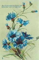 MAY ALL YOUR WAYS BE PLEASANT WAYS AND ALL YOUR DAYS BE HAPPY DAYS corn flowers