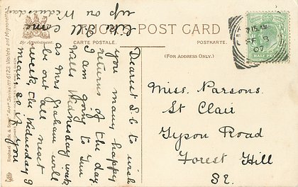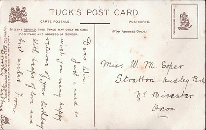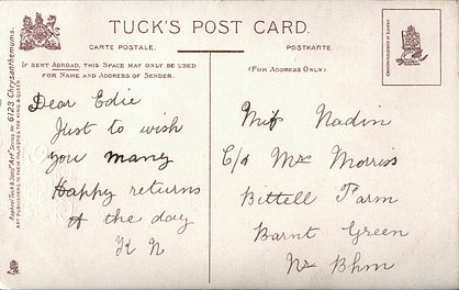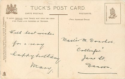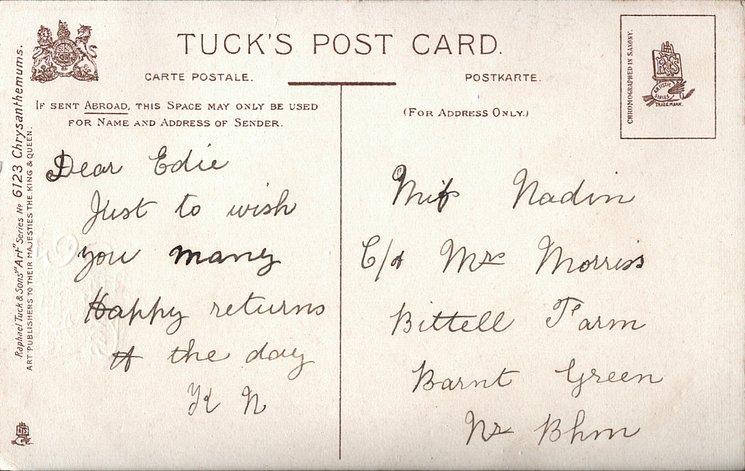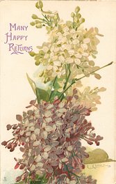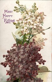 comes opt. in purple MANY HAPPY RETURNS or green A HAPPY CHRISTMAS