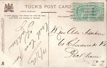 ART, CHROMOGRAPHED IN SAXONY (in or out of stamp box), series title appears on packet but not on cards, listed in 1926/1927 POSTCARD Catalogue