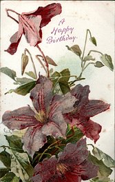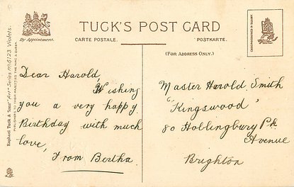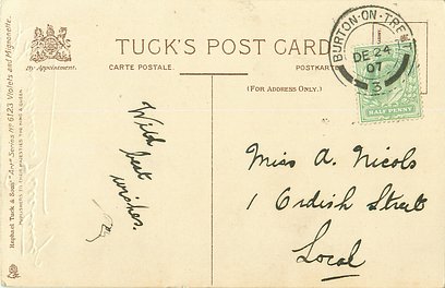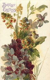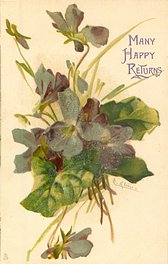 comes opt. in purple A HAPPY BIRTHDAY, or MANY HAPPY RETURNS or CHRISTMAS GREETINGS