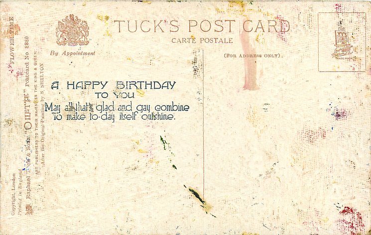 come opt. in blue CHRISTMAS GREETINGS, in red HAPPY RETURNS OF THE DAY