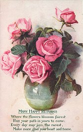 comes opt. in red A HAPPY BIRTHDAY verse, in green CHRISTMAS GREETINGS