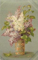golden/blue vase center with white & purple lilac