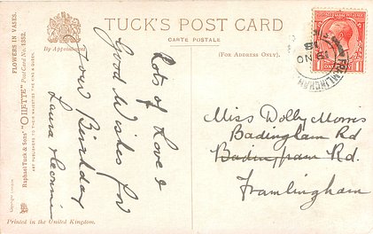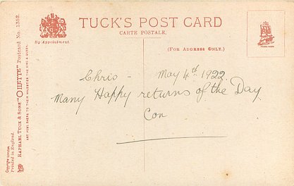 verse:- THE SIMPLEST WISH IS MINE TO-DAY, YET LOVE LURKS IN THE WORDS I SAY; MAY EVERY YEAR, YOUR WHOLE LIFE THROUGH, BRING JOY AND HAPPINESS TO YOU.