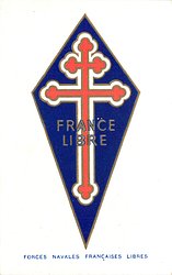 FORCES NAVALES FRANCAISES LIBRES, cross of Lorraine in red on blue background