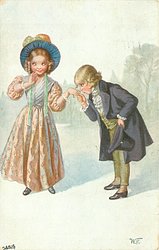 boy bends forward to kiss girl's hand