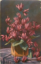 white eidelweis flowers with yellow centres in green squared pot on blue table