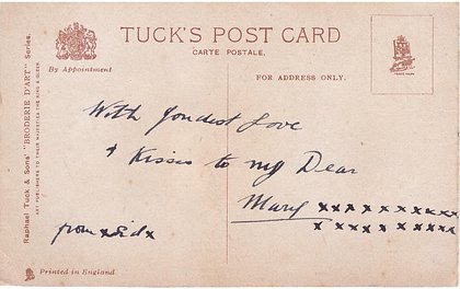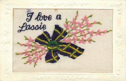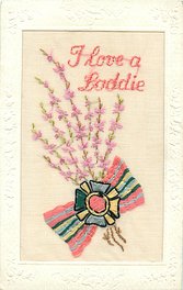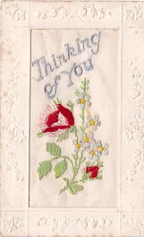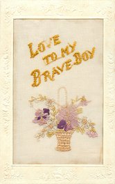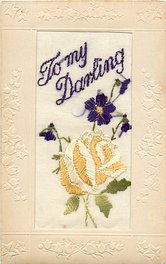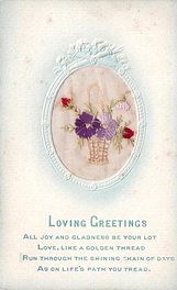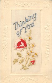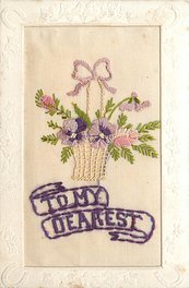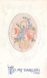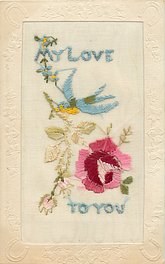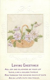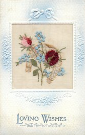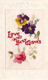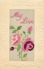 unnumbered, PRINTED IN ENGLAND, embroidered silk panels & embossed borders, two styles, many of the same images come individually numbered in HEART MESSAGE BRODERIE D'ART