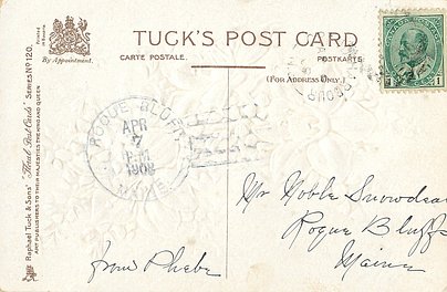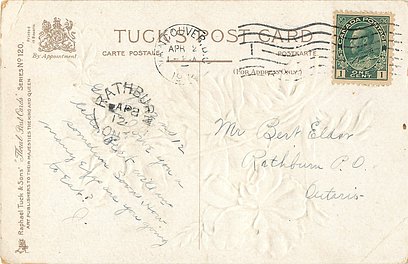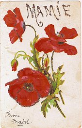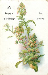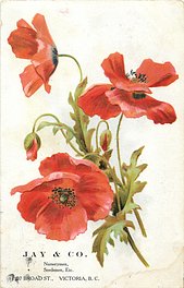 seed ad. in black on front JAY & CO.VICTORIA, B.C., MAMIE in glitter or MAY YOUR BIRTHDAY BE BRIGHT AND HAPPY