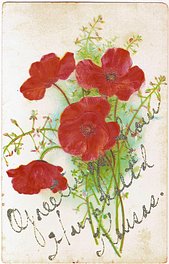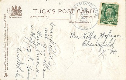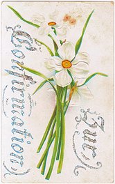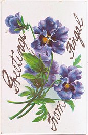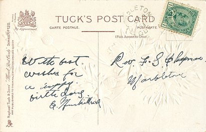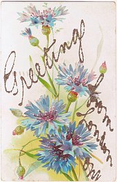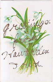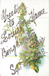 glittered ZUR CONFIRMATION or glittered GREETINGS FROM HAWARDEN WOOD or MAY YOUR BIRTHDAY BE BRIGHT AND HAPPY