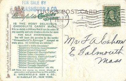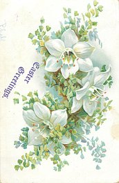 come glittered, come with ad. on back EASTER GREETINGS GREENFIELD'S CHOCOLATE SPONGE or EASTER GREETINGS or GREETINGS FROM...