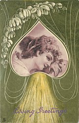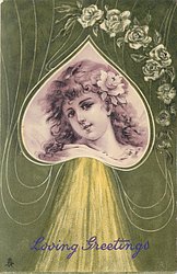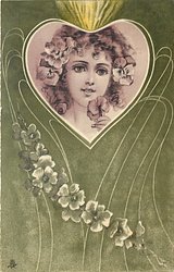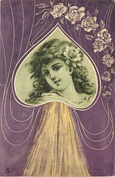 girl's face in heart, violet on green
