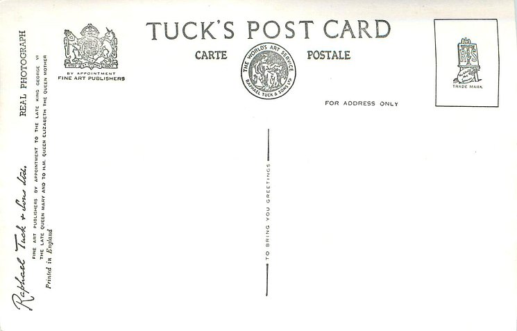 PRINTED IN ENGLAND, REAL PHOTOGRAPH, come with GREETINGS TO YOU or TO BRING YOU GREETINGS (2 styles) on back