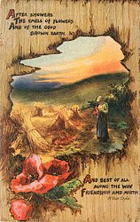 AFTER SHOWERS THE SMELL OF FLOWERS AND OF THE GOOD BROWN EARTH, AND BEST OF ALL ALONG THE WAY FRIENDSHIP AND MIRTH corn field & poppies