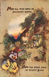 MAY ALL YOUR WAYS BE PLEASANT WAYS AND ALL YOUR DAYS BE HAPPY DAYS cottage & garden, pansies
