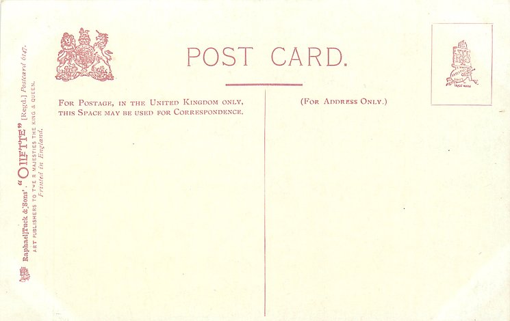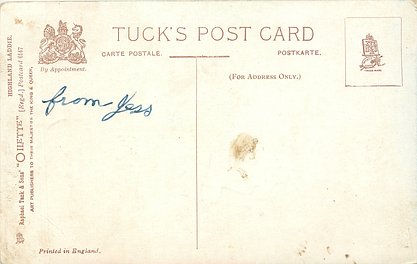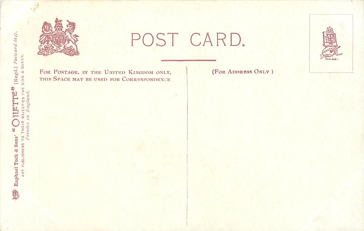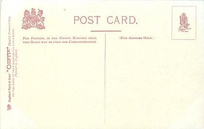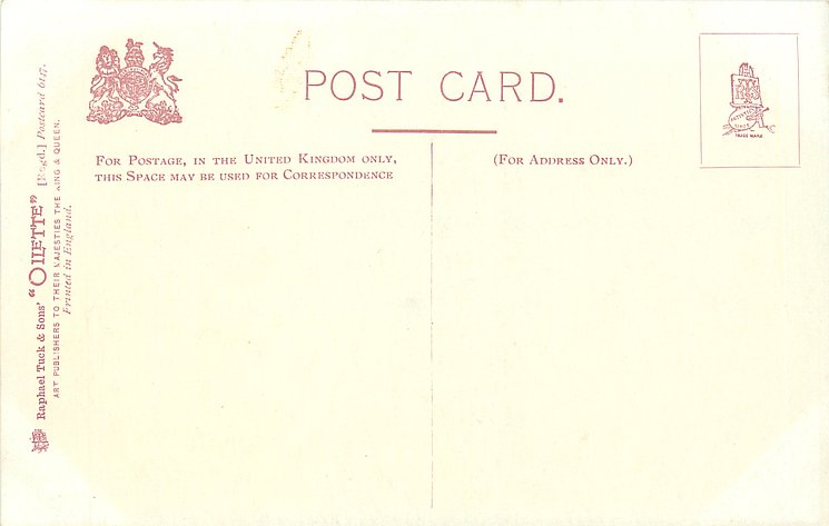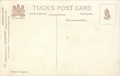 OILETTE, PRINTED IN ENGLAND, come with and w/o set title on back, listed in 1904 & 1908/1909 & 1911/1912 & 1913/1914 Postcard Catalogues, come glossy or matte finish