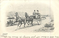 man with lady beside him, drives horse and trap right