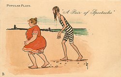 A PAIR OF SPECTACLES fat woman & thin man in bathing costumes
