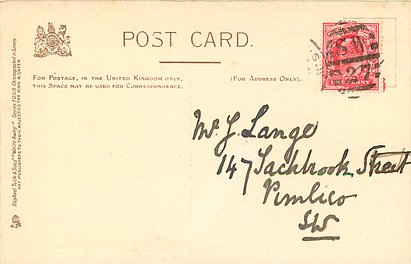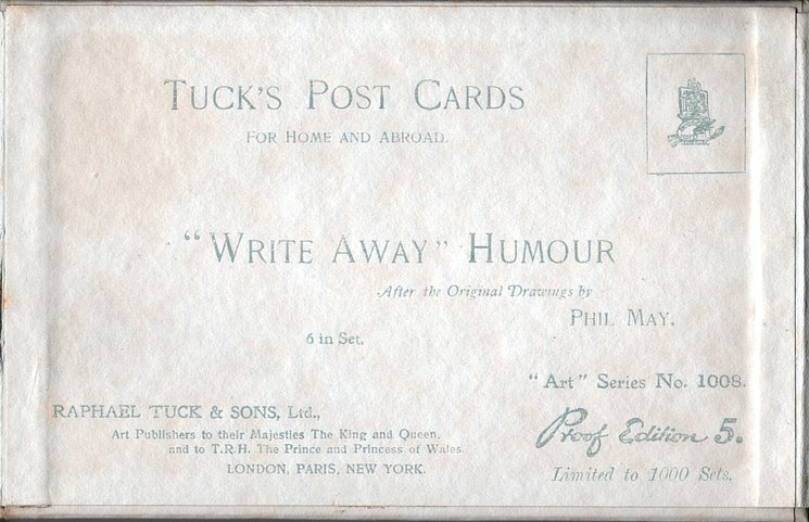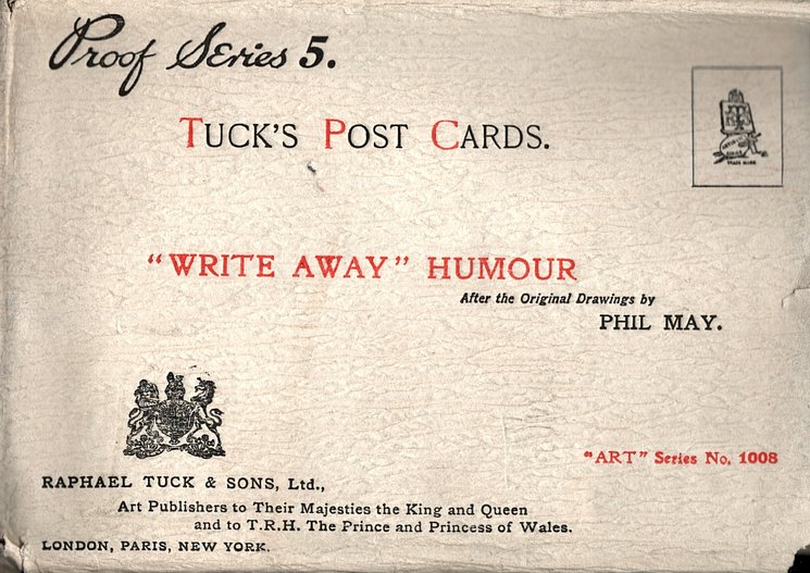 WRITE AWAY, CHROMOGRAPHED IN SAXONY (in stamp box or not), listed as WRITE AWAY in 1904 & 1908/1909 & 1911/1912 Postcard Catalogues, PROOF EDITION 5 (advertised.1902/1903) includes 5 cards from this set