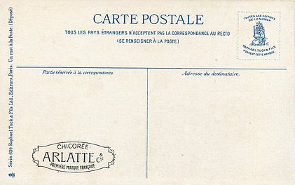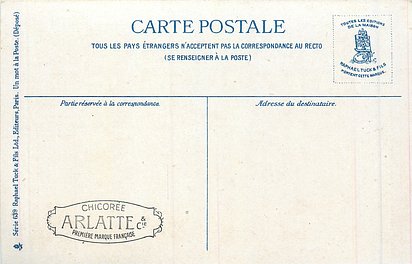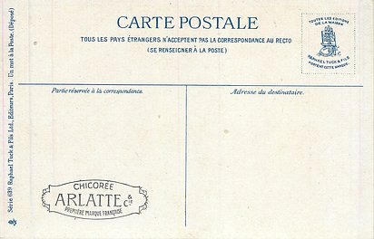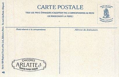 blue backs, UN MOT A LA POSTE, (DEPOSE), text below 6 small illustrations on each card, come CHICOREE ARLATTE back