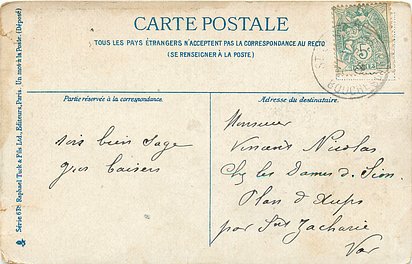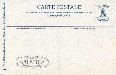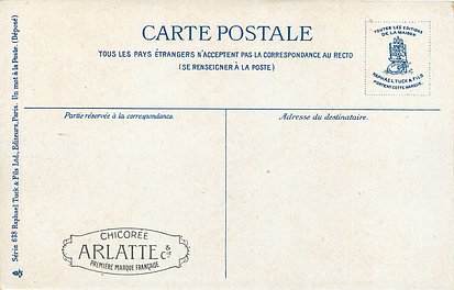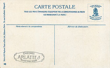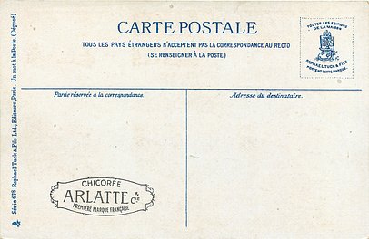 blue backs, UN MOT A LA POSTE, (DEPOSE), text below 6 small illustrations on each card, come CHICOREE ARLATTE back