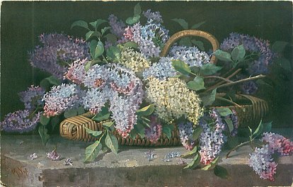 OILETTE, NACH ORIGALEN VON MARIE NYL, MUNCHEN, two backs, same images English series FRAGRANT FLOWERS 8609