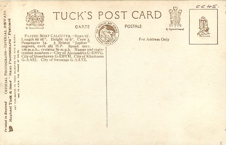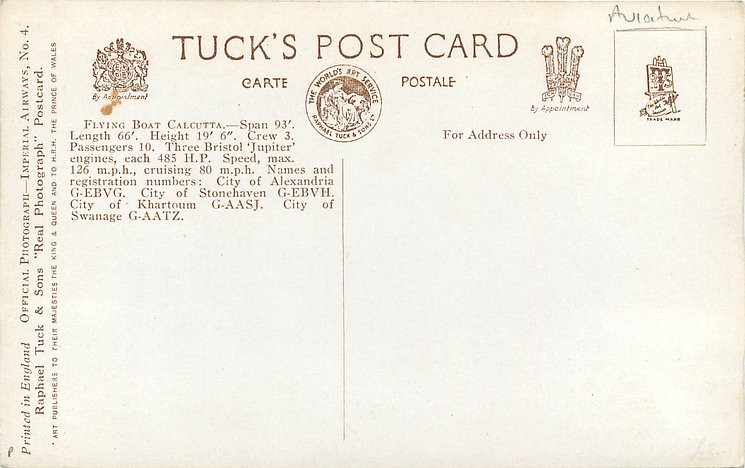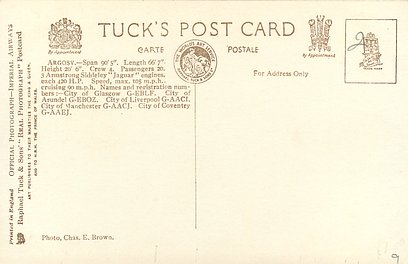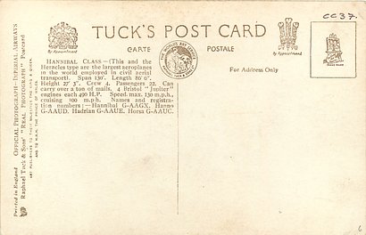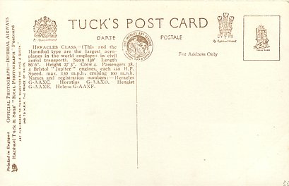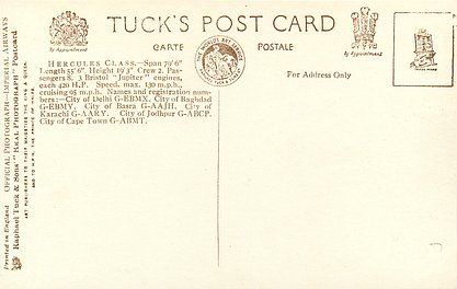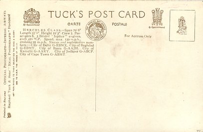 REAL PHOTOGRAPH, PRINTED IN ENGLAND, same images & inscriptions but front numbers on cards 1-6, numbers front & back 23-37, cards also sold in blue album TUCK'S IMPERIAL AIRWAYS OFFICIAL PHOTOGRAPH POSTCARDS