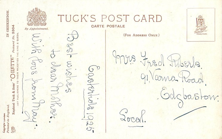 OILETTE, PRINTED IN ENGLAND, COPYRIGHT LONDON, 2 backs, also w/o series title in1643 and 1644, seen with Easter inscriptions