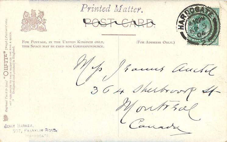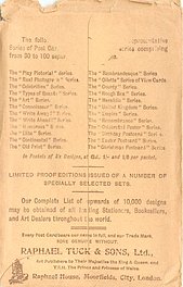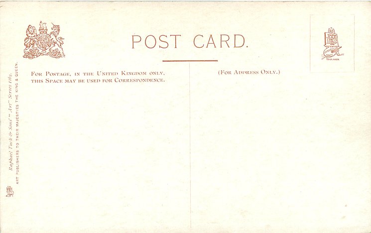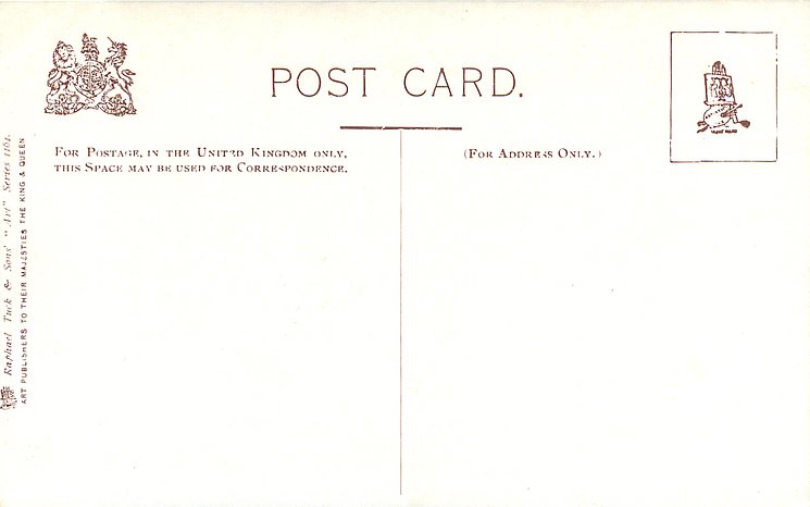 OILETTE or ART (u/b or d/b),PRINTED IN ENGLAND or not, come with & w/o white border for inscriptions, listed in 1904 & 1908/1909 & 1911/1912 & 1913/1914 & 1930 POSTCARD Catalogues & in 1932 ART SERVICE Catalogue