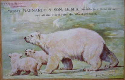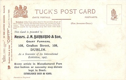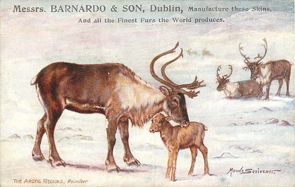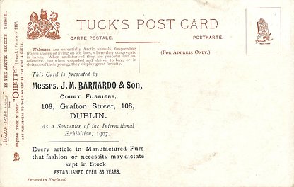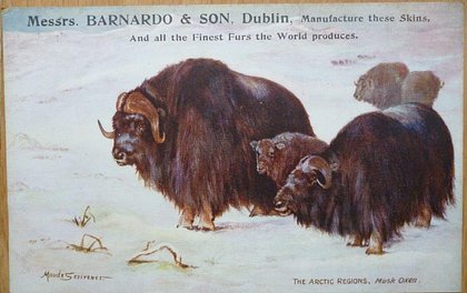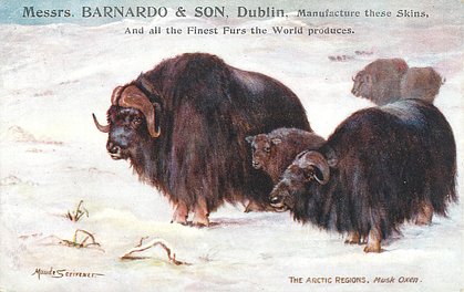 comes opt. in black MESSRS. BARNADO & SONS, DUBLIN verse same image & card title ON THE WAY TO THE NORTH POLE 7339 & IN THE ARCTIC REGIONS 9187 Musk Oxen =is an Arctic Oxen