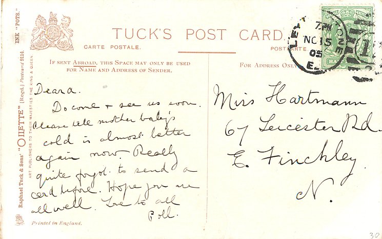 OILETTE, PRINTED IN ENGLAND, listed in 1908/1909 & 1911/1912 Postcard Catalogue