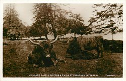 HIGHLAND CATTLE, MOTHER & TWINS AT CREGGANS