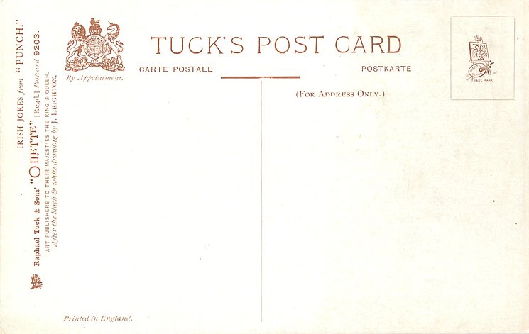 OILETTE, PRINTED IN ENGLAND, listed in 1908/1909 & 1911/1912 Postcard Catalogue