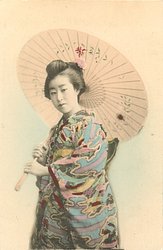 head & shoulders study, facing partly left looking at single chrysanthemums held in left hand
