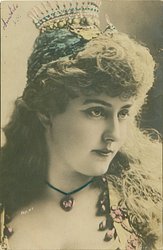 girl wearing headpiece with small crown on top, long hair, facing front looking right
