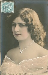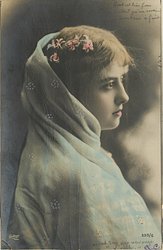 head & shoulders study of girl wearing filmy wrap, facing & looking left