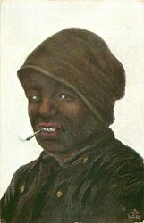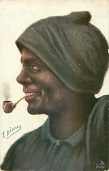 head and shoulders of black man looking left and pipe in mouth