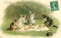LE FIVE O'CLOCK four cats play picnic & take tea