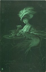 LA PARISIENNE designs in grey/green on black background, German