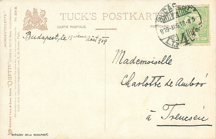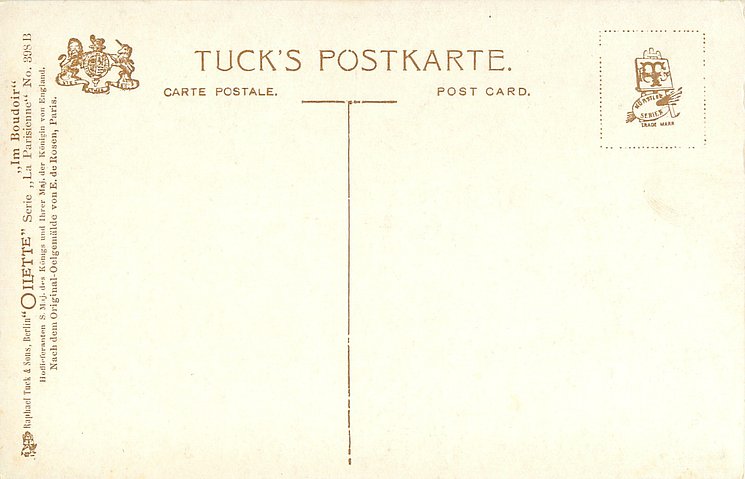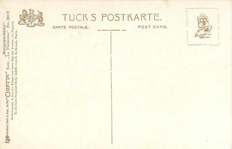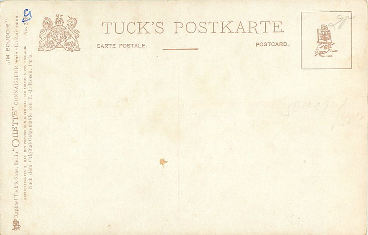 OILETTE or OILETTE CONNOISSEUR, suffix B, same image English back 2746, NACH DEM ORIGINAL.OELGEMALDE VON E. DE ROSEN, PARIS.