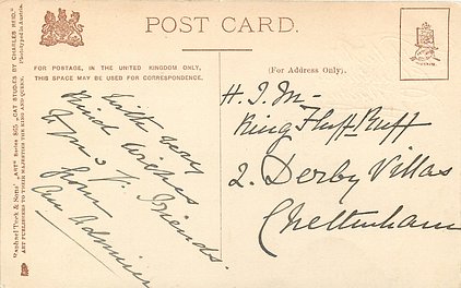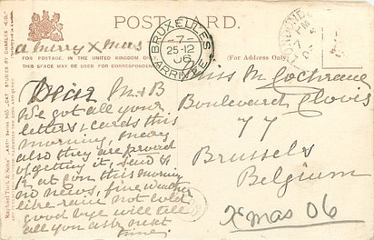 same image on French backed cards entitled EXILE SUR LE TERRE ETRANGERE, comes opt. in blue BIRTHDAY GREETINGS & in red A HAPPY CHRISTMAS