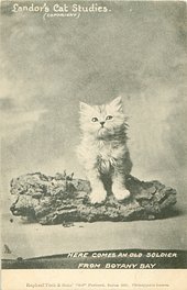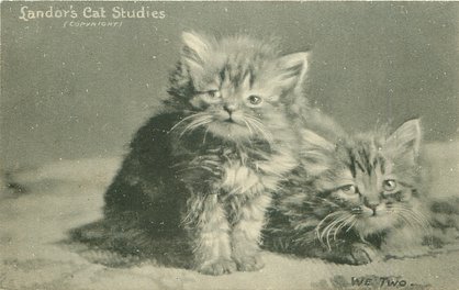 u/b or divided back, grey/black, ART, 5 backs with or w/o PHOTOTYPED IN AUSTRIA, come with CAT STUDIES BY CHARLES REID on back, some of the same images PHOTOCHROME 6495/6496 CAT STUDIES, 7006/7007 SAPPHIRE, French backs in long sets SERIE 252 & SERIE 409, listed in 1904 POSTCARD Catalogue