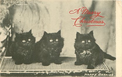 same image on French backed cards entitled TROIS PETITS NEGRILLONS, comes opt. in red A HAPPY CHRISTMAS