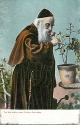 AIME L'ODEUR DES ROSES monk enjoys smelling a rose