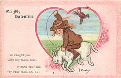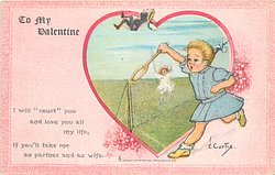 YOUR HEART IS THE TARGET, THE ARROW AM I; YOUR ARE MY "BEAU," DEAR, SO I'VE LET THE DART FLY!