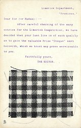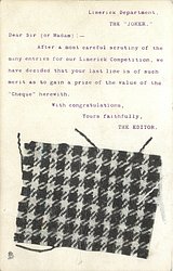 LIMERICK DEPARTMENT, THE "JOKER" letter above black/white plaid panel