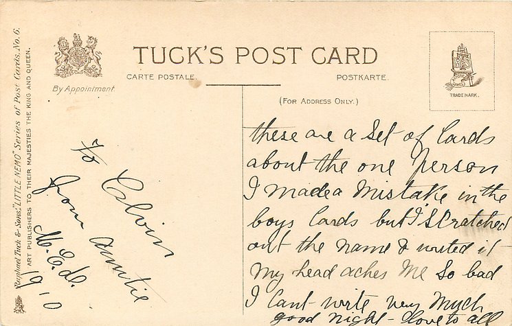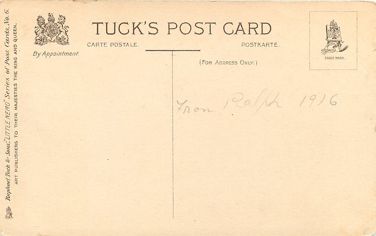 COPYRIGHT 1907 BY THE NEW YORK HERALD CO. set images come 06, LITTLE NEMO w/o VALENTINE GREETINGS front
